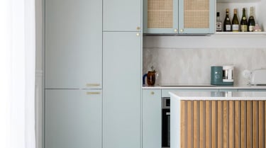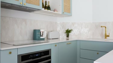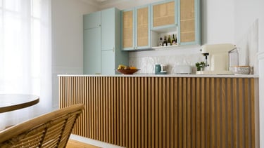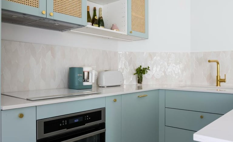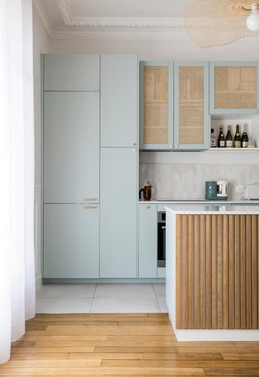 Après avoir pris en compte attentivement les souhaits des propriétaires, nous nous sommes lancés dans ce projet ambitieux. La rénovation a impliqué des changements majeurs, comme la refonte totale de la cuisine avec l'utilisation audacieuse du bleu ciel pour les façades des armoires, ainsi que la rénovation complète de la salle de bain avec des teintes naturelles et des matériaux haut de gamme.