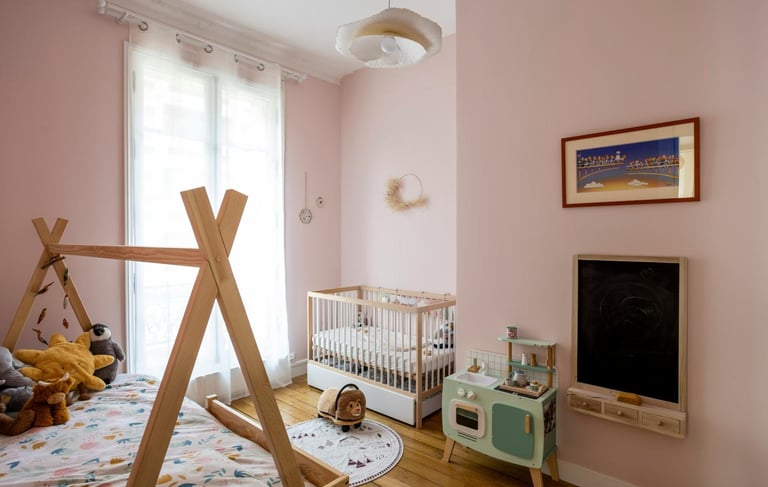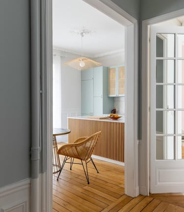 En plein cœur de Paris, un superbe appartement de 90m² séduit par son charme et son élégance. Cet espace de vie a été méticuleusement rénové pour offrir un cadre de vie exceptionnel alliant confort et esthétisme. Les propriétaires ont opté pour des couleurs douces mais audacieuses, créant une atmosphère apaisante et sophistiquée.